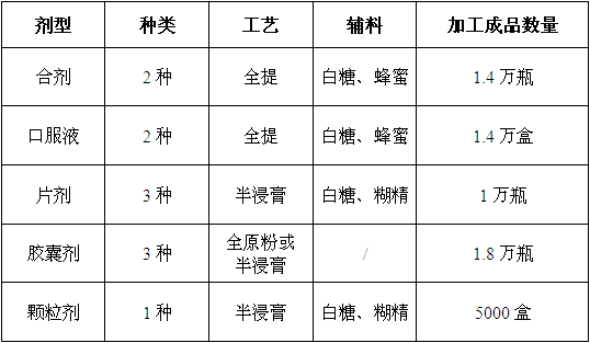 颗粒剂。委托加工的剂型及成品数量见附表。